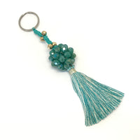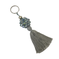 Balloon XL Bag Charm Un detalle encantador que combina la delicadeza de los cristales con la suavidad de un borlón textil. Su diseño presenta una esfera elaborada con cuentas brillantes, acompañada de un tassel en hilos vibrantes que le da movimiento y un aire sofisticado.