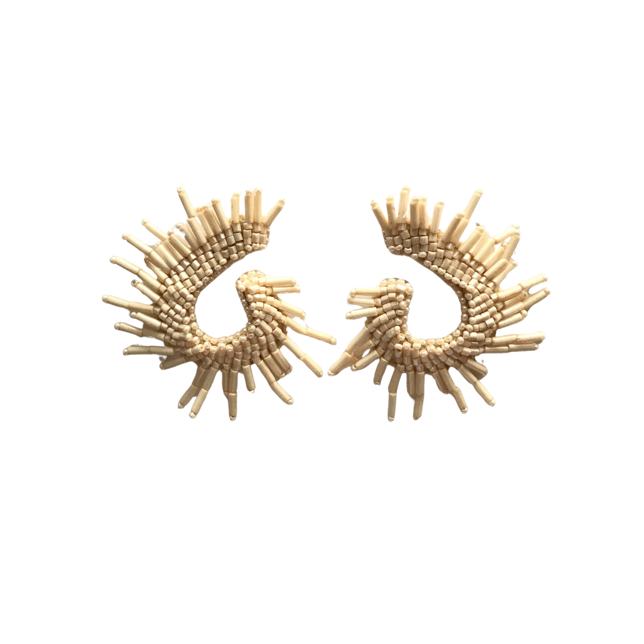 EMMA es una pieza moderna con alma artesanal. Su diseño en forma de aro enrollado está tejido cuidadosamente con mostacillas y tolette, creando una estructura envolvente y elegante.