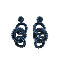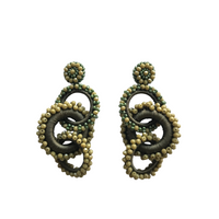 Filomena Hoops Un diseño que danza entre curvas y texturas, tejido a mano con la delicadeza de hilos metalizados, abrazados por diminutas cuentas que reflejan la luz con cada movimiento. Su estructura, compuesta por espirales entrelazadas, celebra la armonía entre lo orgánico y lo sofisticado.