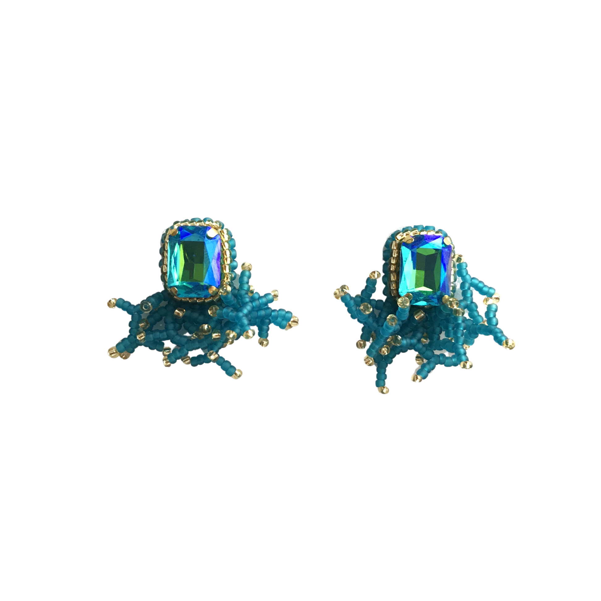 Layla es una joya pequeña pero con gran personalidad. Su diseño parte de un cristal rectangular que captura la luz con elegancia, rodeado por un delicado borde de mostacillas que enmarca la pieza con brillo sutil.