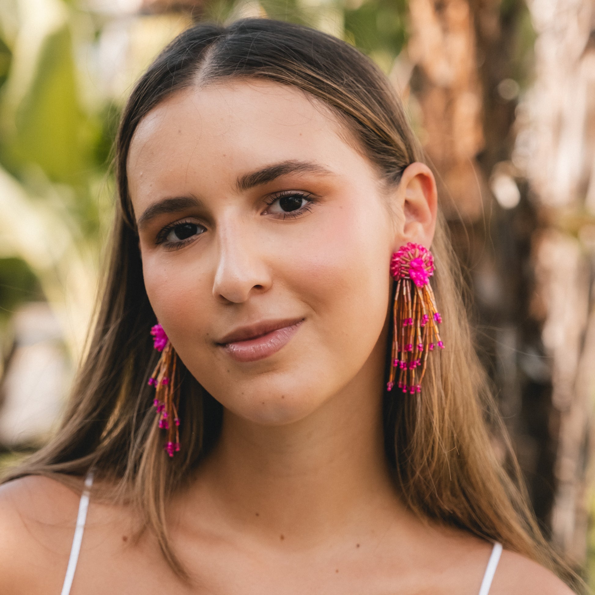 Su diseño en abanico con flecos vibrantes no solo aporta elegancia y frescura, sino que también realza cualquier look con un toque artesanal y contemporáneo.