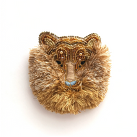 TIGER BROOCH una pieza poderosa que celebra la fuerza y la elegancia felina. Este broche está cuidadosamente bordado a máquina con mostacillas de distintos tonos que forman el rostro de un tigre o león en vista frontal.